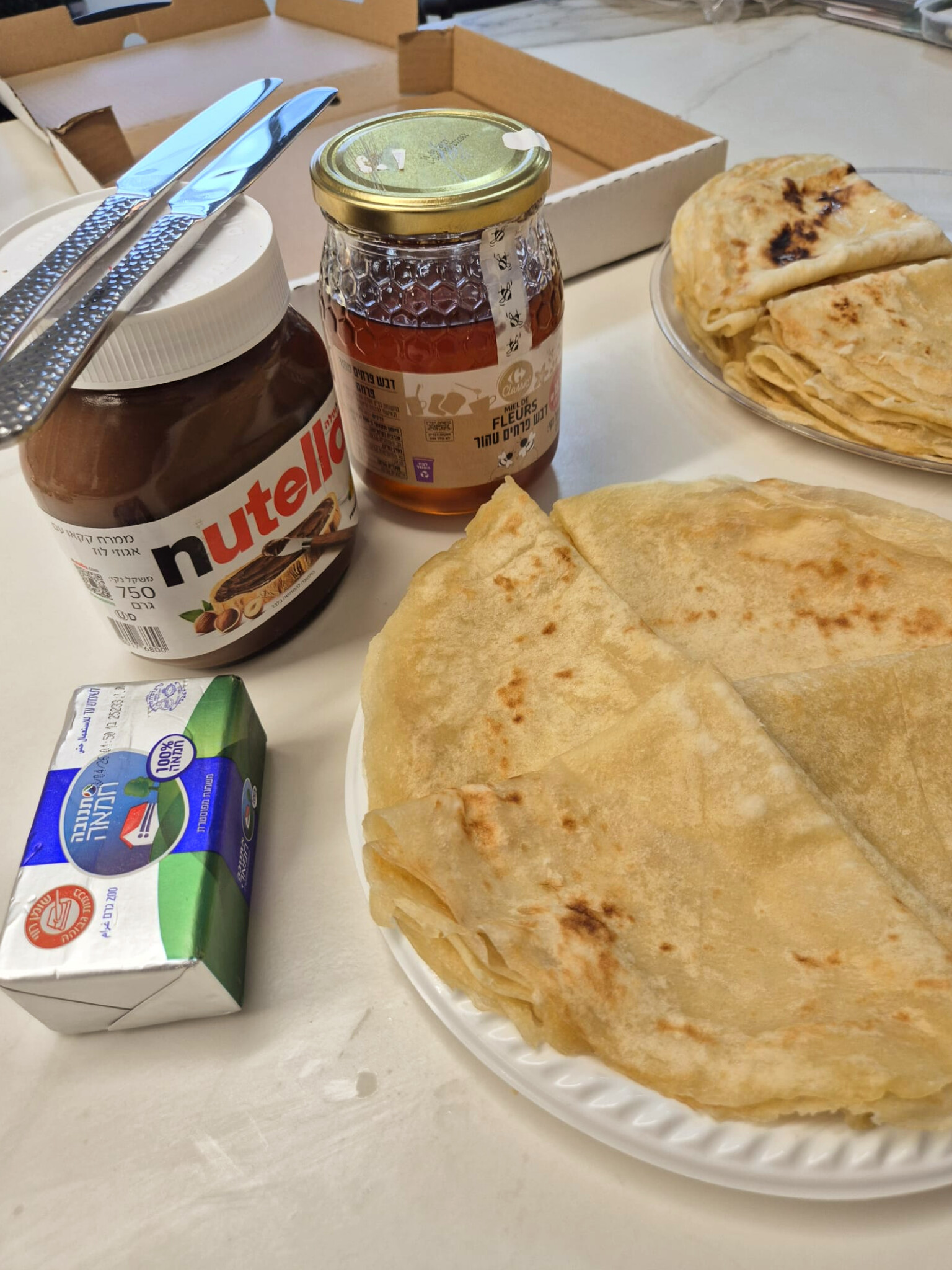 1 קילו = בין 20- 24 יחידות מופלטה מוקפאות. בערב המימונה יש להפשיר, לחמם במיקרוגל מספר שניות או בתנור ב50 מעלות חום לכמה דקות. לזלוף דבש וליהנות.